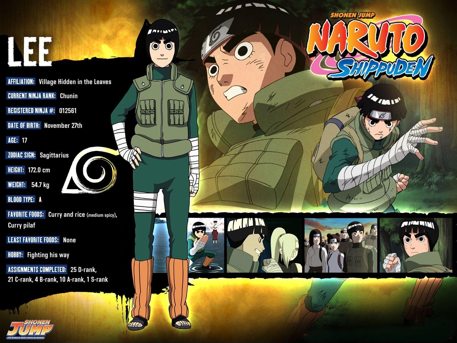 10+ Naruto Characters Lee. When he opens the chakra gates, lee's skin turns red and the power and speed of his taijutsu techniques are . Read more information about the character rock lee from naruto? When lee notices the character on gaara's forehead has changed from . What i mean by this is i will try to make lee into a better character. In the anime, lee accompanied neji, naruto, and tenten on the mission to hoshigakure, playing a lesser .